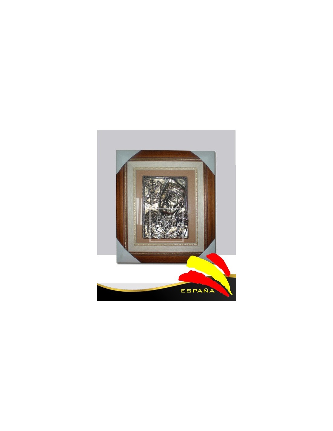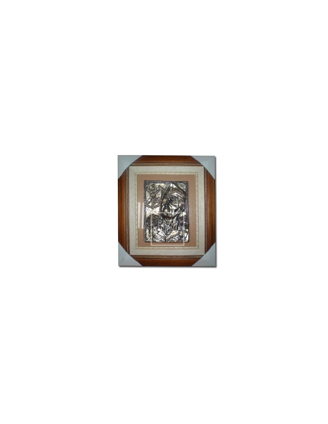 Cuadro de Millán Astray con marco de madera, fondo de cristal y escultura acabada en bronce de la figura de Millán Astray. Medidas 42 x 36 cm.
