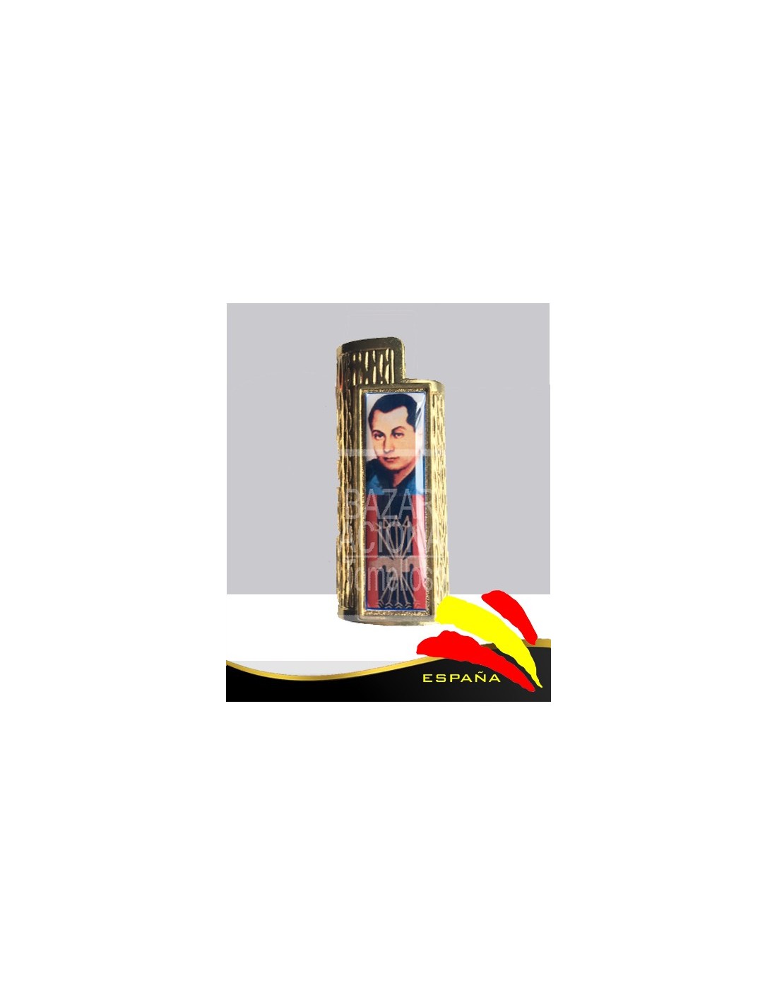 Funda dorada para mechero mini plano con imagen en resina de la Figura de José Antonio Primo de Rivera. Se envía con mechero.