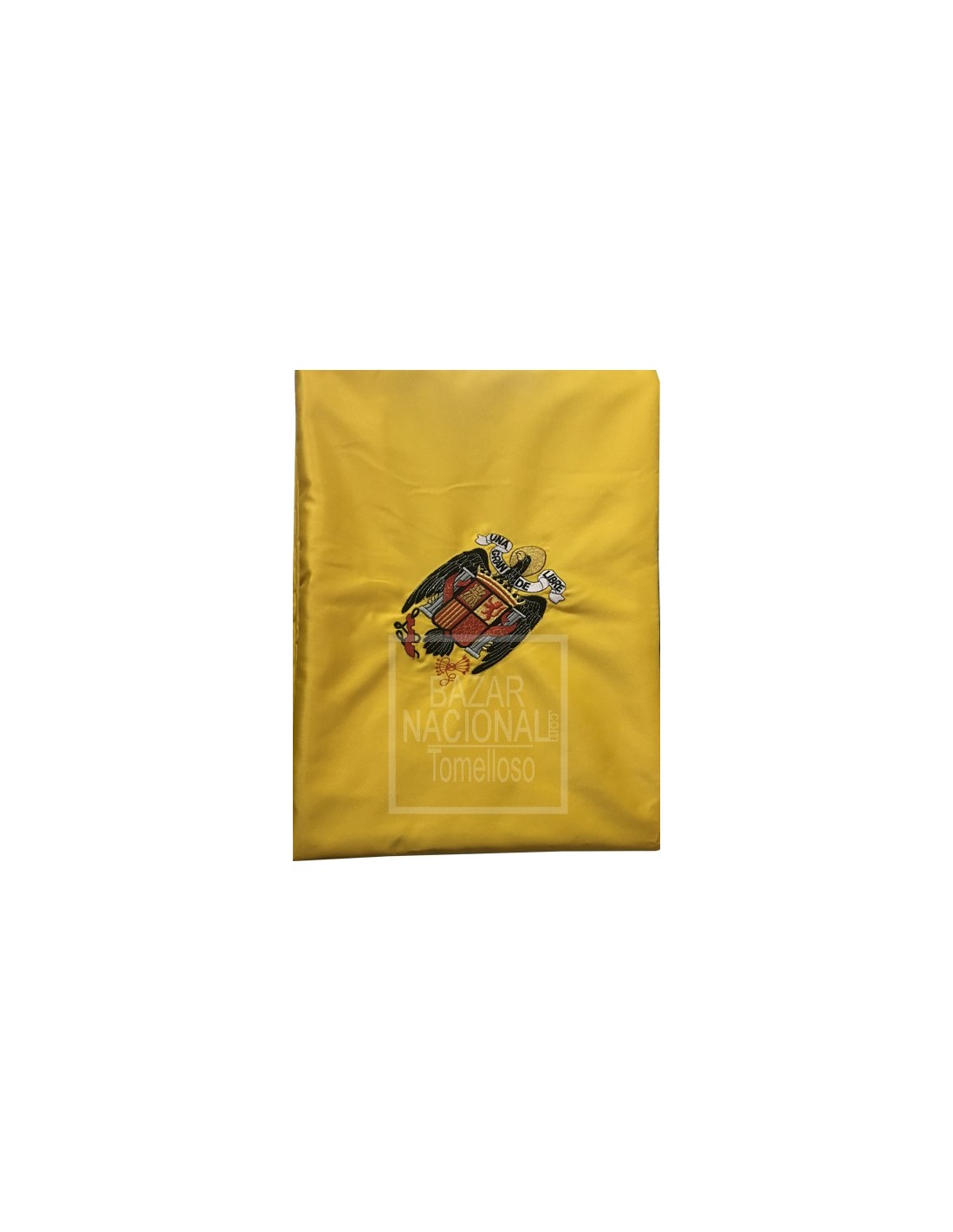 Bandera de España confeccionada en raso con relleno interior y con el emblema del Águila de San Juan bordado. Medidas de la Bandera 1,50 x 1 mtr. y medida del bordado 17 x 12 cmt.