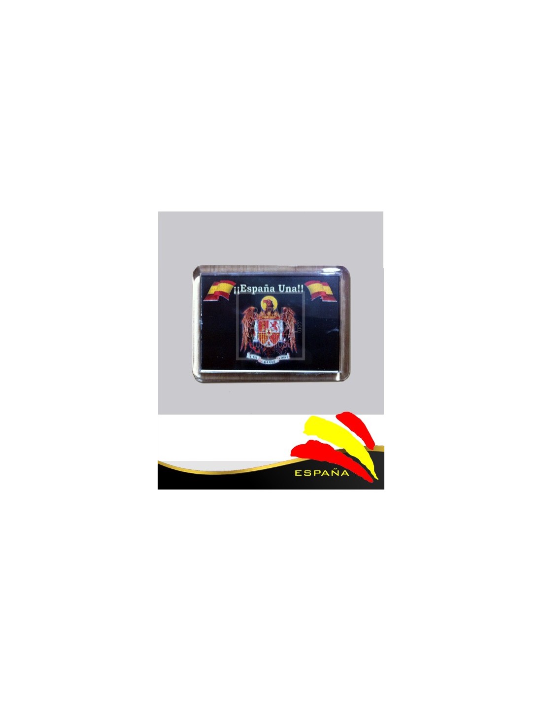 Imán cuadrado de metacrilato con el emblema del Águila de San Juan sobre fondo negro.