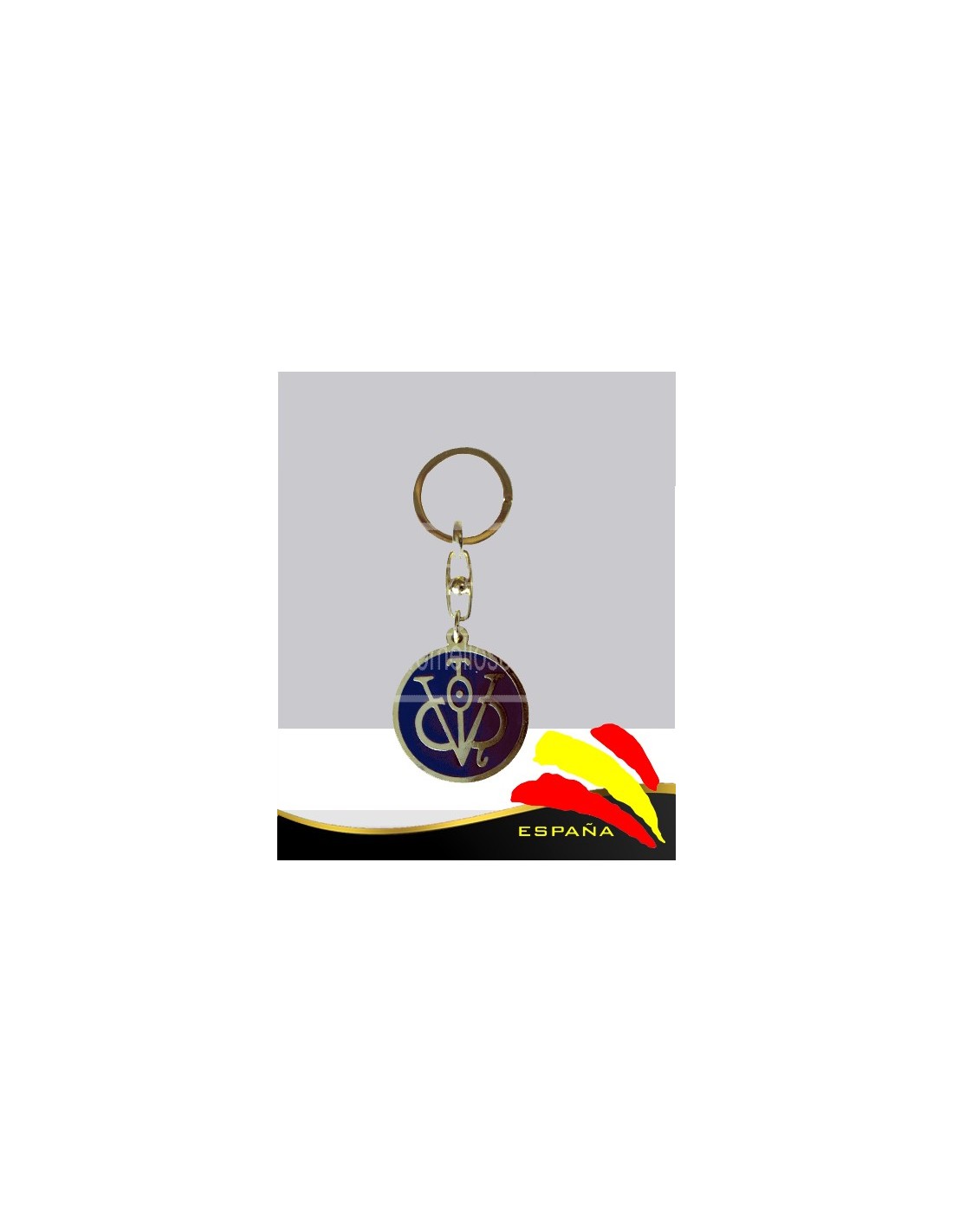 Llavero en color dorado con el emblema de la Victoria en color dorado sobre esmalte azul cobalto.