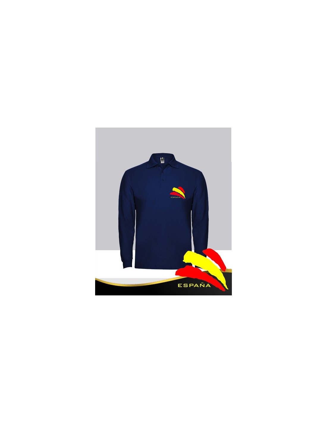 Camiseta polo en azul marino de manga larga con el emblema de la Bandera de España.