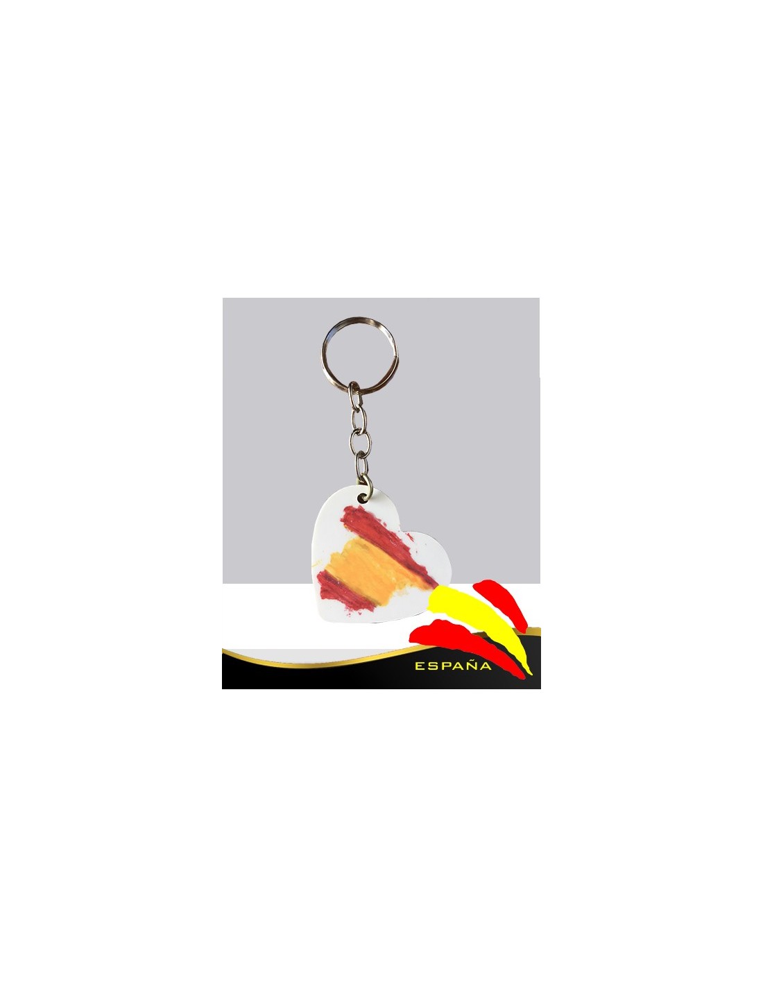 llavero con forma de corazón y doble imagen con el mapa de España.