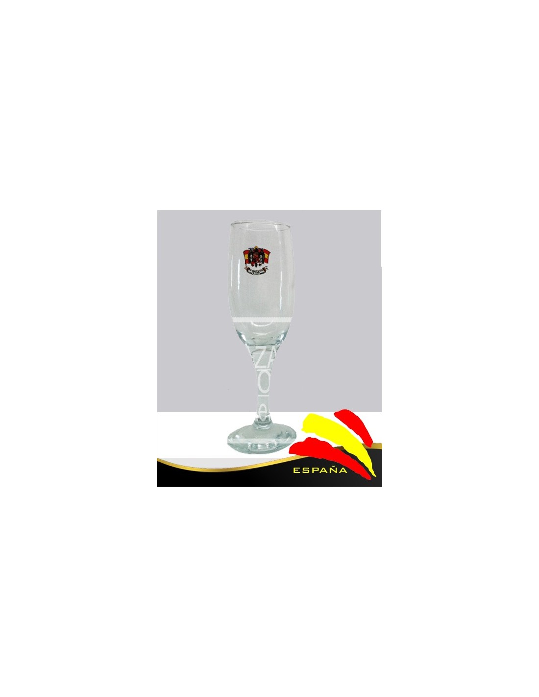 Copa de cava con el emblema del Águila de San Juan a todo color.
